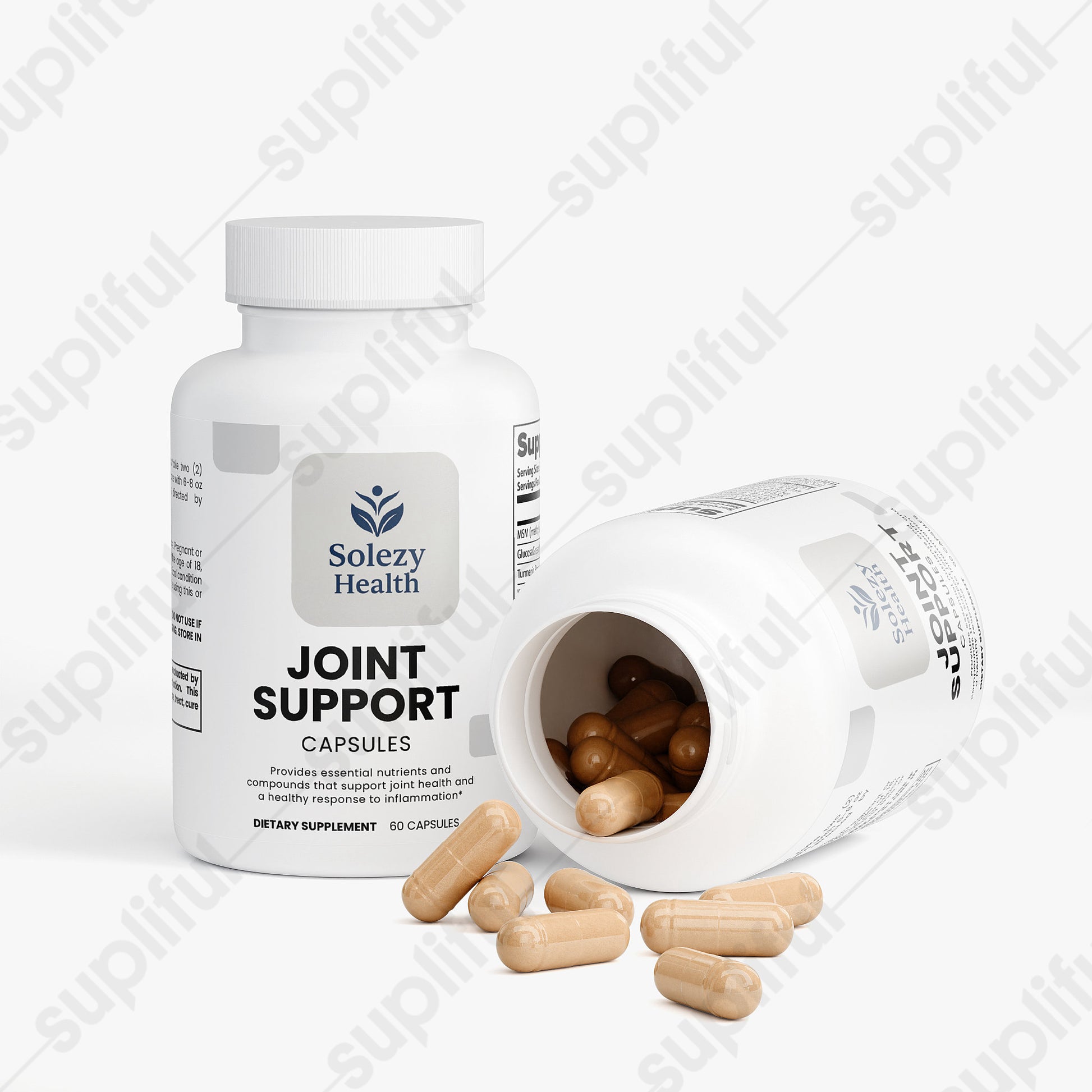 This joint support supplement provides essential nutrients and compounds that support joint health. It features a comprehensive blend of ingredients such as MSM, GlucosaGreen® vegetal glucosamine HCl, Turmeric Powder, and Boswellia serrata Extract, designed to promote joint flexibility, reduce discomfort, and support overall joint function. Ideal for daily consumption, this supplement aims to enhance your joint health through its potent, natural ingredients, without relying on artificial additives.*